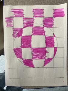 Today, I joined teaching artist Kalyani Singh subbing for Rathi’s workshops at PS243. Today’s lesson was inspired by the artist Bridget Riley, known for her optical illusion paintings or “op art.” Kalyani welcomed the students and then led the group in a warmup, following her movements and vocal sounds in a story about thunderstorms and rainbows, which also encouraged them to take deep breaths. Then, she asked the kids to share one thing they love about themselves to build trust, connection, and positivity in the group. Next, we showed them a PowerPoint of Bridget Riley’s artwork and invited them to share their observations. After a brief demonstration, we passed out templates for the students to create their own optical illusions using just one color. Despite only using one color, there was so much variety in everyone’s artwork! At the end of each class, the students came back to the rug and were able to share their artwork with each other and us, and then their peers gave a compliment to each.