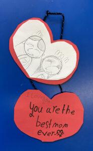 In Briget’s classes, she led a craft themed around the upcoming Mother’s Day. First, we talked with the students about what Mother’s Day celebrates, reasons and ways to be thankful for our moms, and how we can also celebrate anyone who takes care of us like aunts and grandmothers, since some kids don’t have a mom, or have two, or can celebrate their dads as well. Bridget introduced the activity and shared her version, a hanging paper picture frame with a drawing of her and her mom plus a message. We talked through the creation process step by step and then handed out the materials so the kids could make their own. It was lovely to see their sweet messages and drawings thanking their mothers and showing their appreciation. The students took it very seriously and worked quite hard on these! I was sad to go at the end of the day; I’m going to miss working with these wonderful teaching artists and students now that my internship is over!