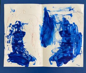 Wednesday, May 7 was sadly my last day at PS15 this semester. I joined both Rathi and Briget’s classes again. In Rathi’s kindergarten classes, she started with a calm body warm-up, leading everyone in gentle stretches to get ready for art. Then, she shared a brief lesson on the artist Salvador Dali, who she said had been an inspiration for her in art school. The students had the chance to make observations about the artist and his art, noticing his unusual style. Rathi explained how he was making art not based on reality but on dreams and imagination. We furthered this idea with the activity for today. After a demonstration, the kids each got a sheet of paper, which they folded in half and then opened up. Then, they splattered paint and got to be “scribble monsters” on one side of the fold before pressing it back together to create symmetrical abstract shapes. This was a starting point for them to use their imagination, like Dali, to turn this shape into anything they saw or imagined. They came up with such good ideas- a KFC tree, butterflies and bugs, magic portals, and more! It was amazing to see. At the end, each student got the chance to bring their art to the front of the room to show everyone what they made and tell their classmates about it. Finally, Rathi led a cool down on the rug to center our bodies back in the space and finished with a chorus of “I did it! I am proud of myself!”