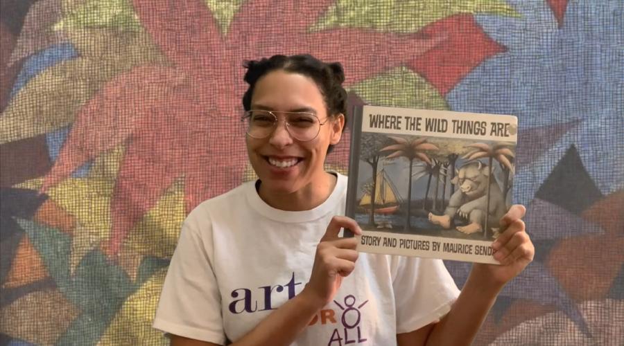 As part of my virtual work through my Arts For All internship, I have been going through and learning from some of the Virtual Classroom video series on Arts For All’s website. This week, I watched a series by teaching artist Mélissa Smith. In this set of videos, she uses Maurice Sendak’s Where the Wild Things Are for an interactive storytelling exploration that promotes literacy learning and artistic engagement, targeted at first graders. I engaged with these videos and got to explore ways that the arts support learning.