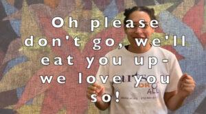 The second part of the series moves into creative making. Smith explains that we will be coming up with our own “wild things” in this session, but first she re-introduces the warm-up from part one. Then, she does a story summary of Where the Wild Things Are to review the book collectively. She introduces the concept “wild things” and teaches the viewers how to look for textual clues to figure out what a wild thing looks like. We look for textual clues and in the pictures. Some have feathers, horns, yellow eyes, claws, and so on. She prompts us to imagine having these attributes on our own bodies, like scales or feathers, encouraging imagination, and then tells us to pause the video to draw our own wild thing. Then, she has us come up with our own “wild thing” voice and has us practice saying the line, “Oh please don’t go, we’ll eat you up I love you so!” Smith says we can also give them names. For the closing, she encourages us to think about something unique about ourselves, just like the wild things are all unique and individual and then leads some deep breaths.