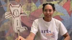 In part four, the viewers start the session having made their puppets. Smith leads another warm-up and then starts the rehearsal process of telling the Where the Wild Things Are story with our puppets. She leads kids through making ocean sounds, growing like a tree, throwing a “wild rumpus,” pretending to sleep, and practicing their line. Then, it’s showtime! Smith reads the book one more time, prompting viewers to act out the narrative with their puppets. It’s very interactive, allowing kids to use their voices, bodies, and puppets to tell the story while developing literacy and emotional skills. At the end of the session, Smith closes by encouraging the viewers to talk to someone about something they themselves did really well during the process, and what someone else did well during the process if they were participating collaboratively. This was a great culmination of the four-part series! I had fun using my imagination to make my puppet and to consider all the benefits of using the arts in a format like this one for literacy learning. This series is just one of many on the Arts For All website that uses arts-based activities to help kids develop literacy skills, social-emotional skills, and more, so I encourage you to check them out, both with a child or on your own!